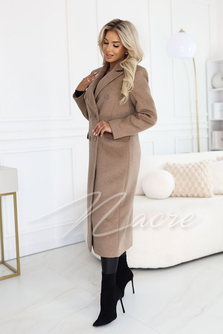 Discover elegance that never goes out of style. Michelle beige ladies double-breasted coat is a combination of class, femininity and timeless style. Made of high-quality fabric with added wool, it will be perfect for the autumn-winter season, providing warmth and comfort even on colder days.