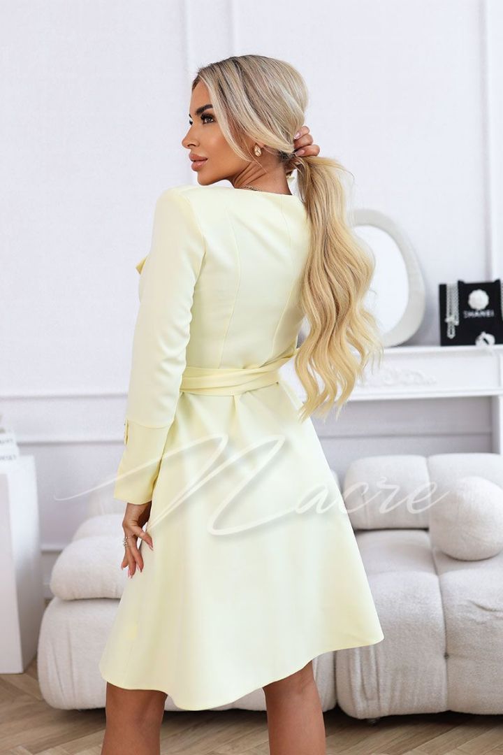 Maroon knee-length dress with decorative flower and long sleeves - Linda