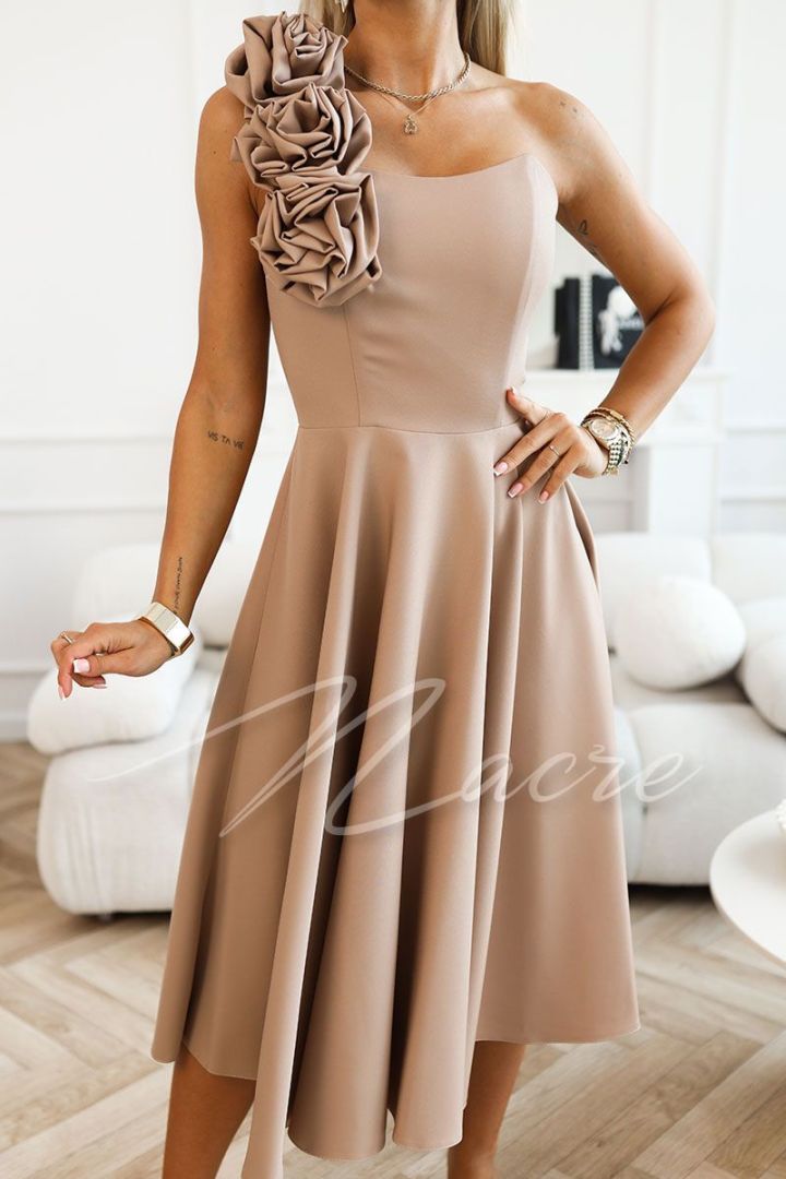 Dazzle with elegance and feminine charm in the Charmi model - a unique midi dress for weddings, created for stylish celebrations. This striking corset dress perfectly models the silhouette, exposing the waist and neckline. The asymmetrical cut with a fashionable detail - a one-shoulder dress - adds character and modern chic.