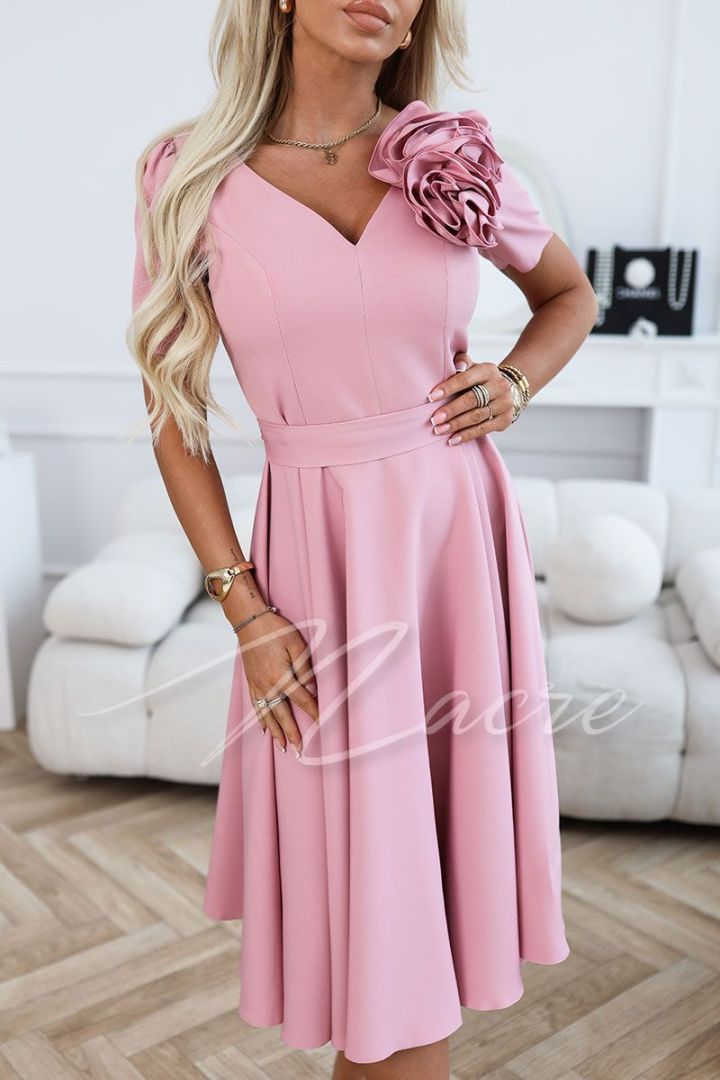 Fuchsia flared dress with dropped shoulders for a wedding - Briana