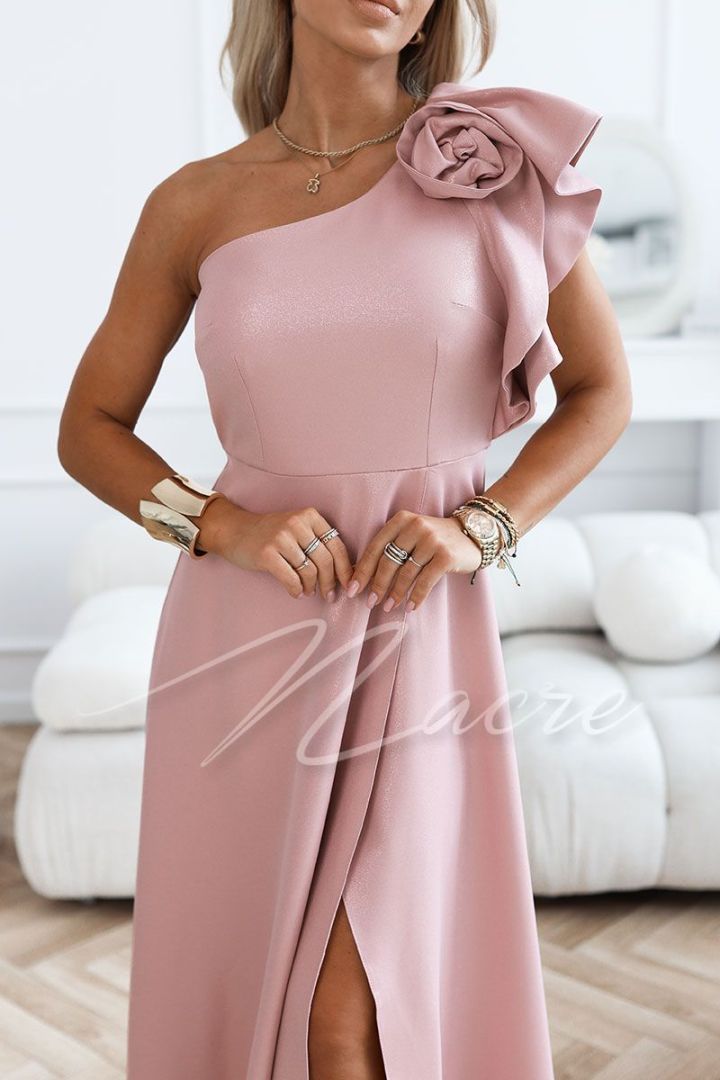Fuchsia flared dress with dropped shoulders for a wedding - Briana