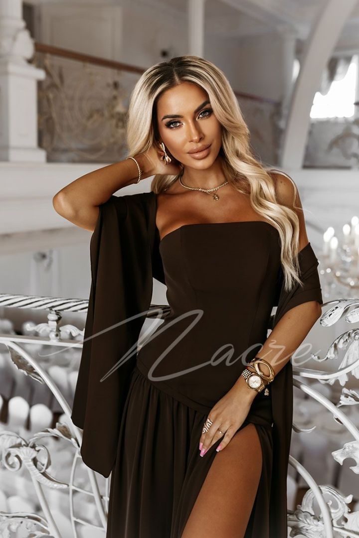 Chocolate one shoulder maxi dress with decorative appliques - Jovita
