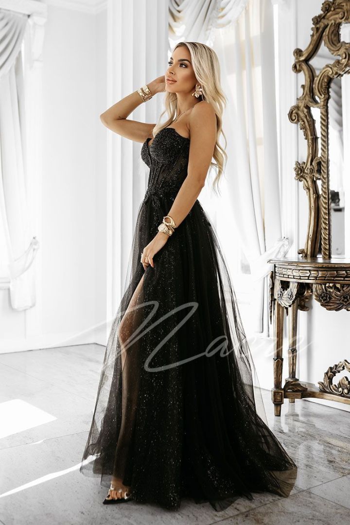 There are dresses that don't just impress - they stop the eye. The black Inessa evening dress is one of them. Its richly embellished bodice shines with every movement, making you feel like a woman who knows exactly what she wants... and always gets it. This corset will not only accentuate your waist and bust, but also give you a confidence boost that can't be faked. The deep black, carefully crafted cut and luxurious shine of the applique create an effect that no one in attendance will forget. This is the perfect evening dress, prom dress and dress for New Year's Eve if you want to look elegant, sensual and absolutely unique at the same time. The dress was designed with attention to every detail.