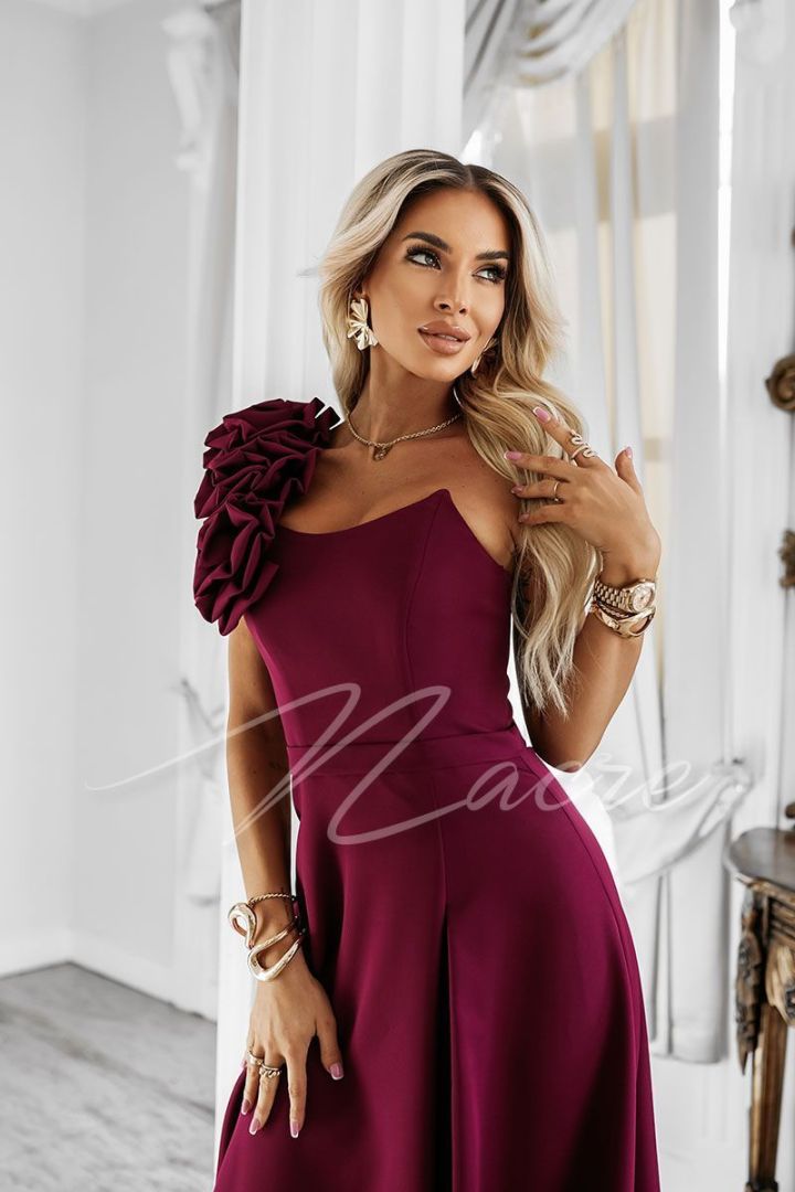Chocolate one shoulder maxi dress with decorative appliques - Jovita