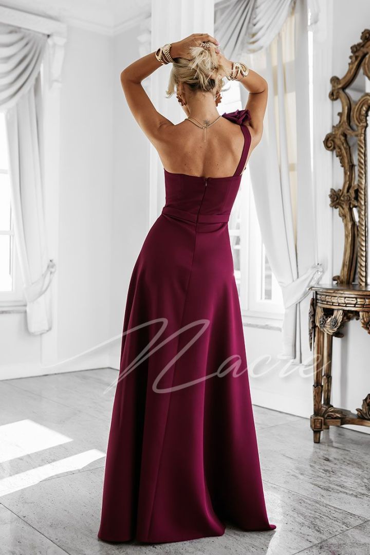 Dark green one-shoulder maxi dress with lacing on the back - Gracja