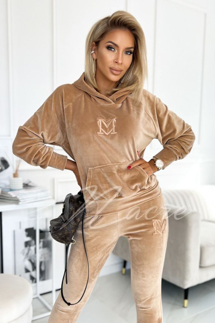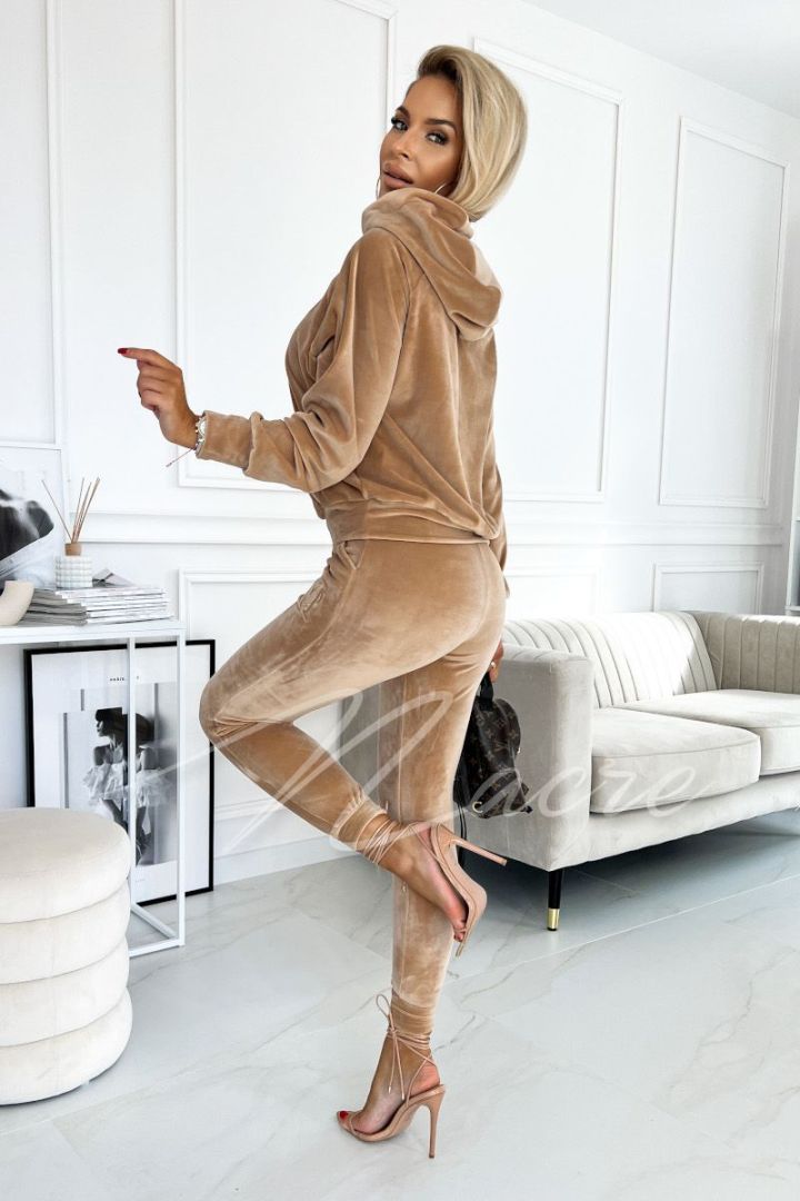 Ladies' Velour Tracksuit Set Light Caramel - Carmela
