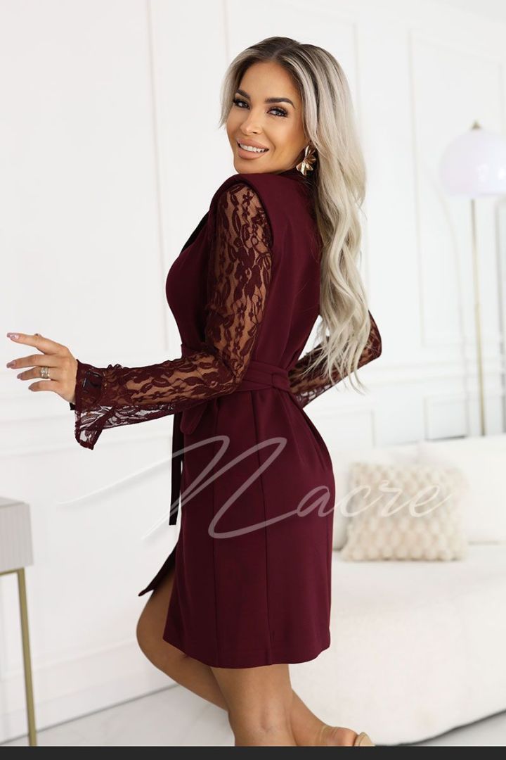 Pink fitted mini dress on thin straps with water neckline - Trudi