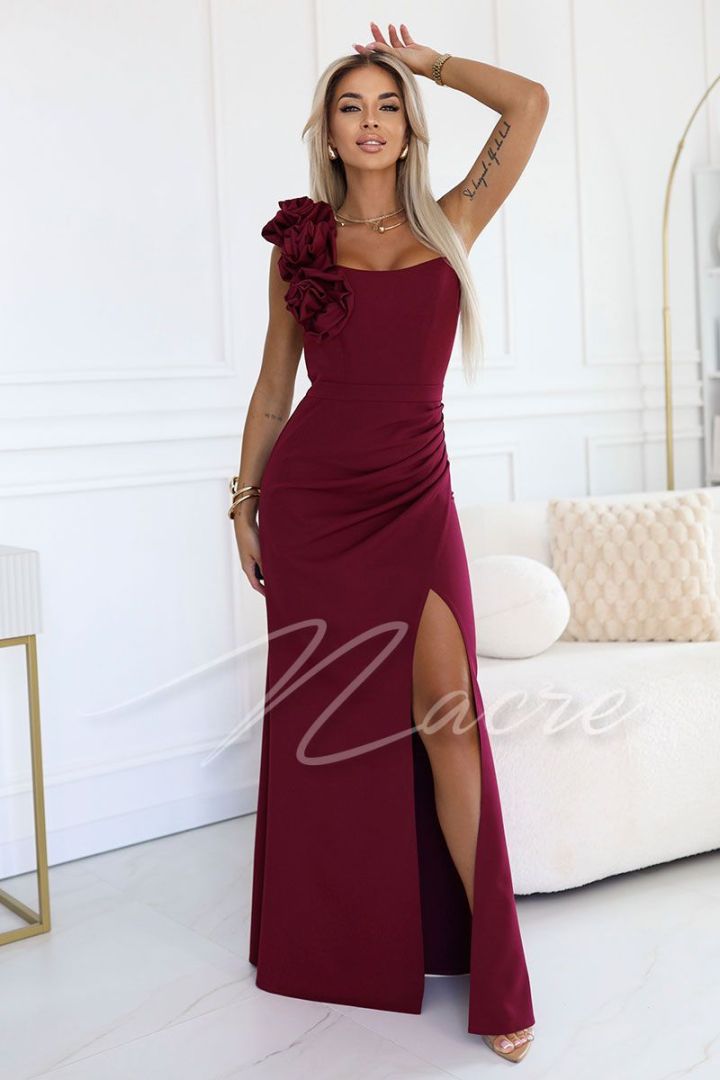 Maroon one shoulder dress with roses - Rosaline