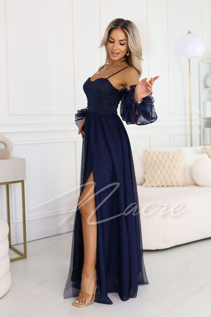 Navy blue sequin one shoulder dress with feathers and cutout - Eden