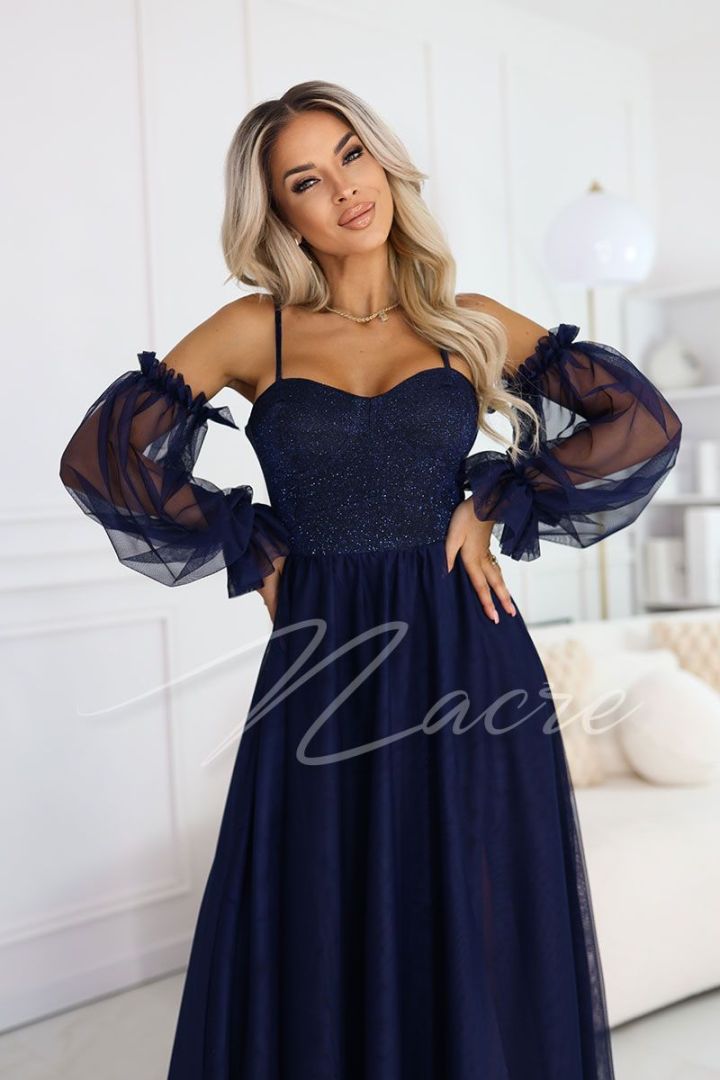 Chocolate maxi evening dress with lace and long sleeves - Amaya