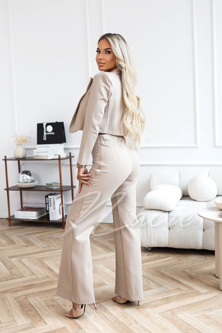 Light beige women's suit with short jacket and rhinestones - Sisi