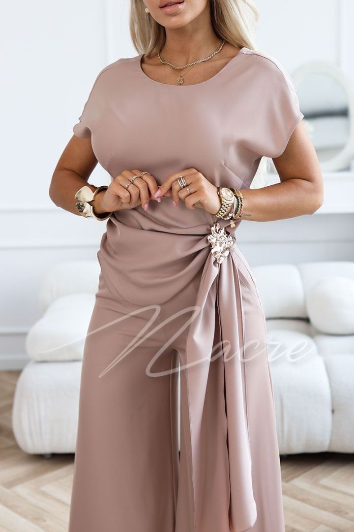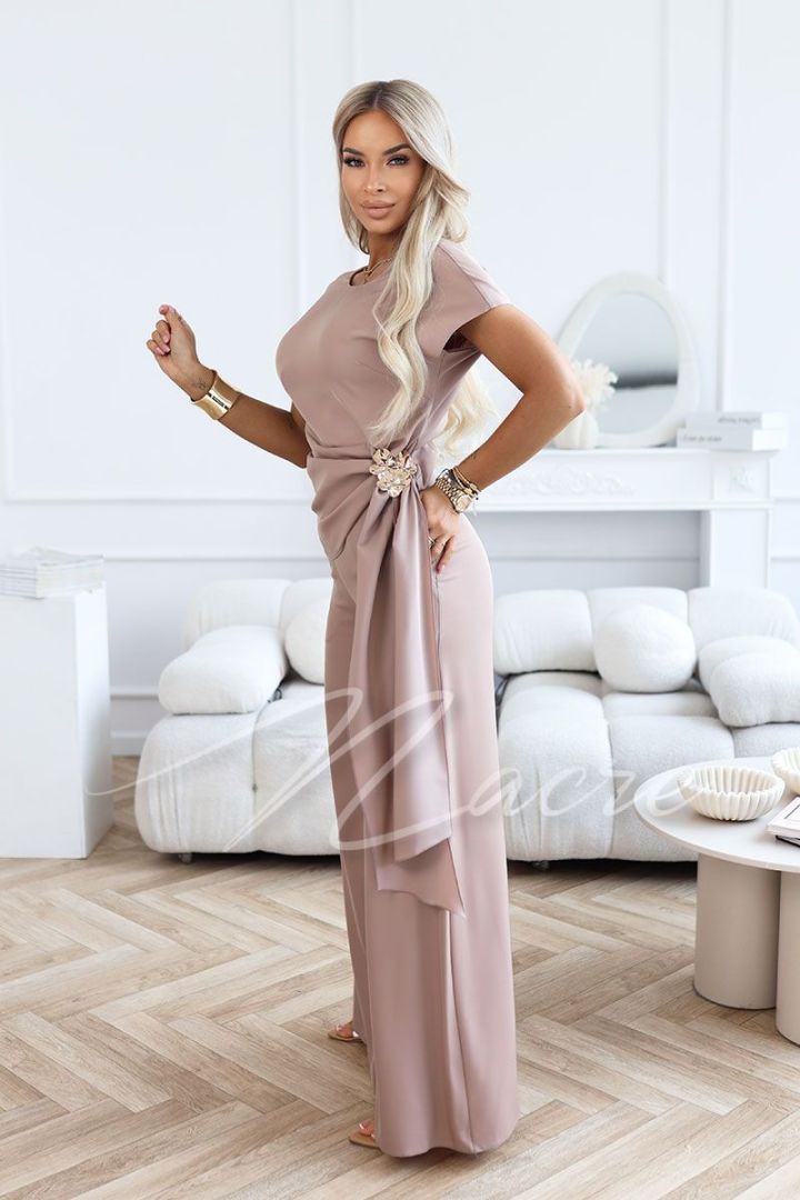 Women's mocha coloured set with wide trousers and blouse - Leandra