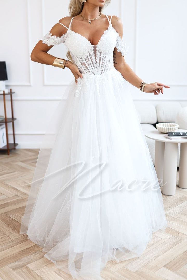 copy of Long white fishtail cut wedding dress with bows - Scarlett