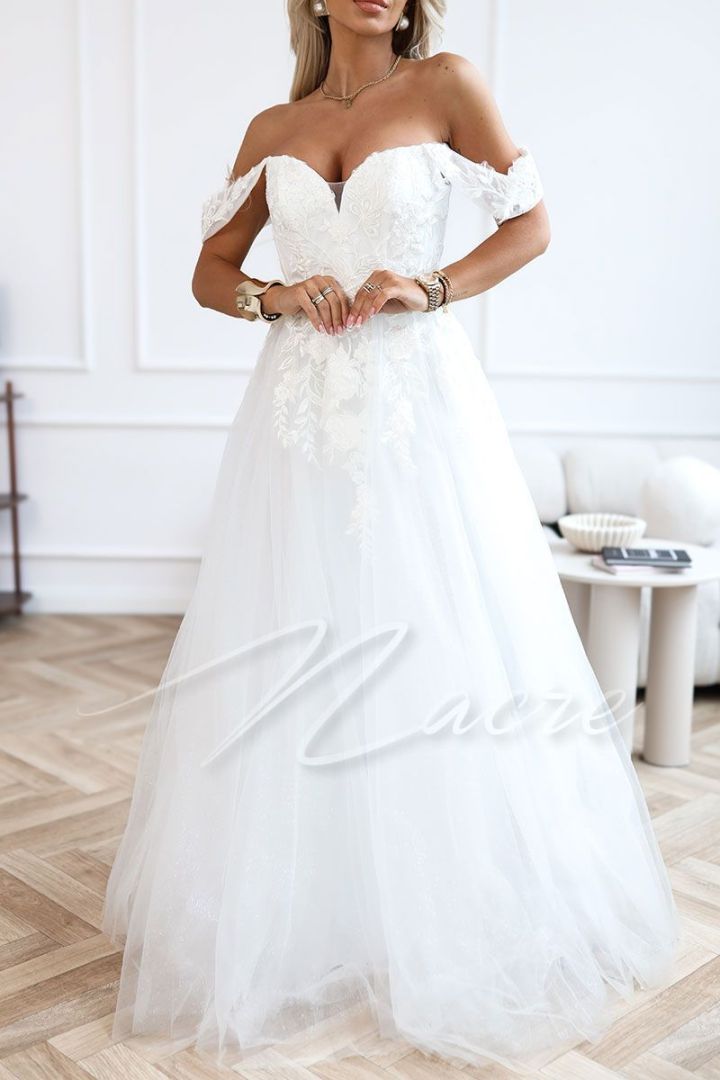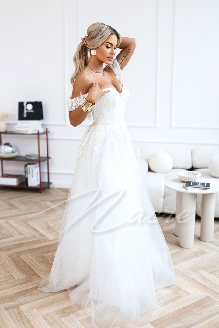 Corseted wedding dress with dropped shoulders in a fishtail cut - Lorita
