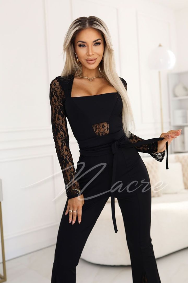 Black women's jumpsuit with wide leg and decorative belt - Fama