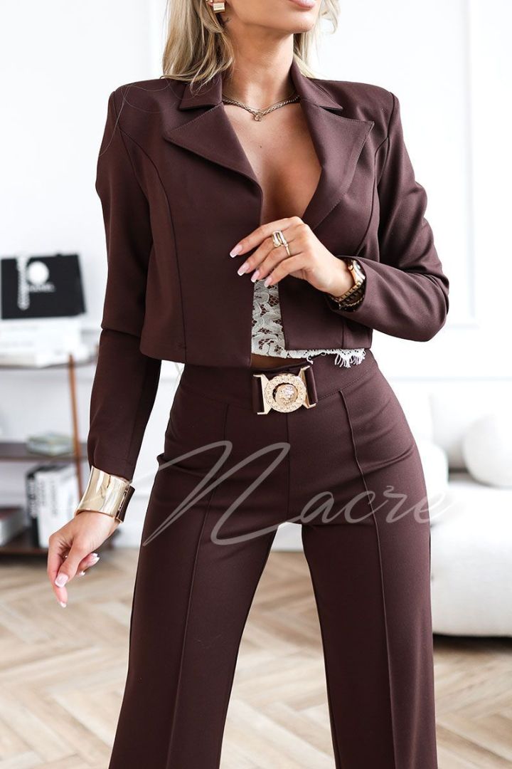 Fuksjowy komplet damski z krótką marynarką i spodniami z wysokim stanem - Letty