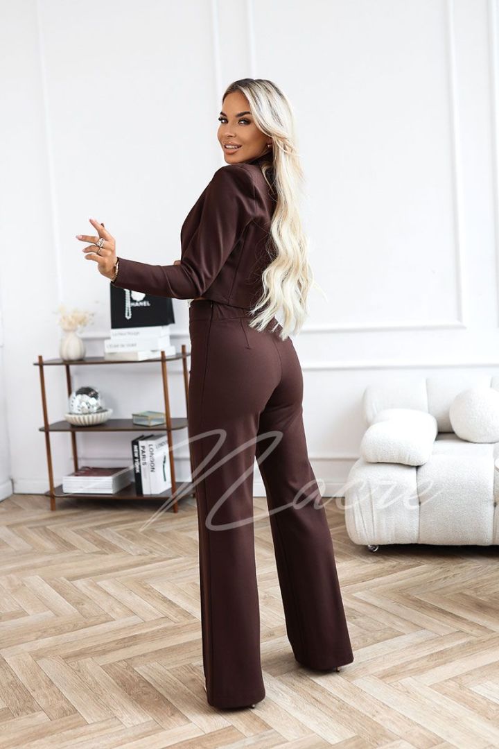 Błękitny komplet damski z krótką marynarką i spodniami z wysokim stanem - Letty