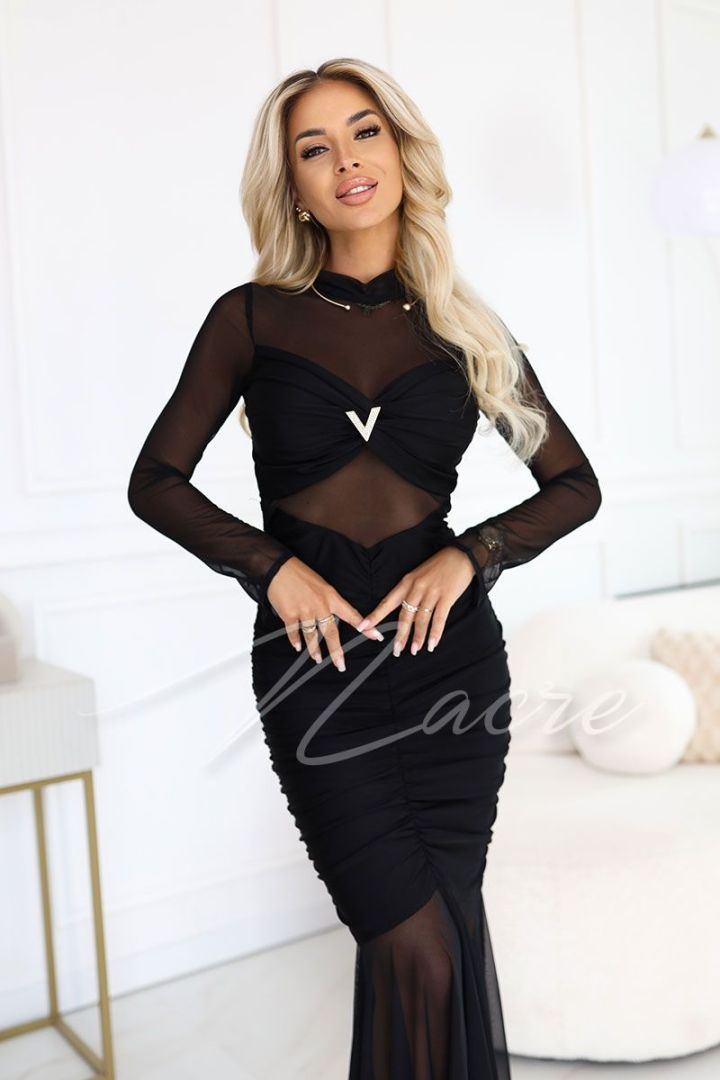 Czarna sukienka hiszpanka krótka z opadającymi ramionami - Nita