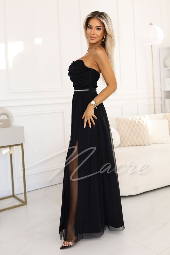 Czarna sukienka gorsetowa mini z ozdobnymi kamieniami - Nessi