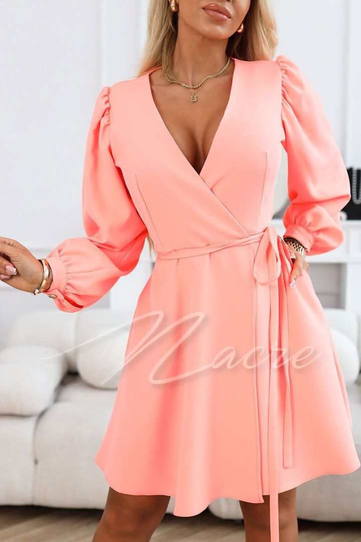 Czekoladowa wizytowa sukienka przed kolano z długim rękawem - Etna
