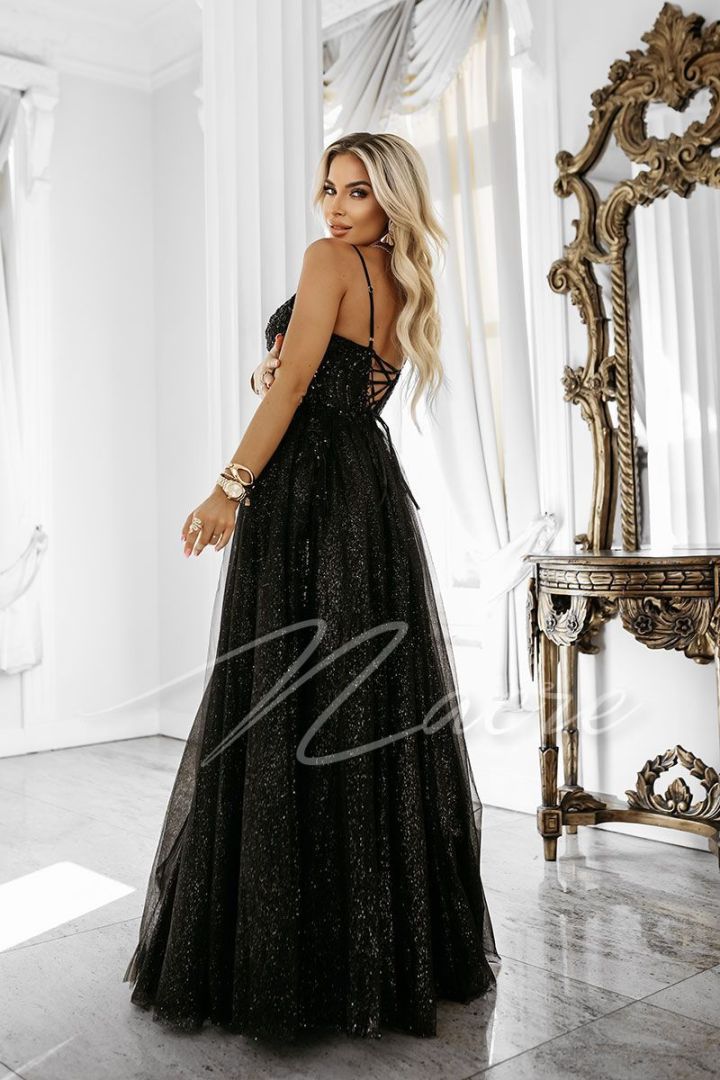 Czarna sukienka rozkloszowana z gorsetem i kwiatami - Kimberly