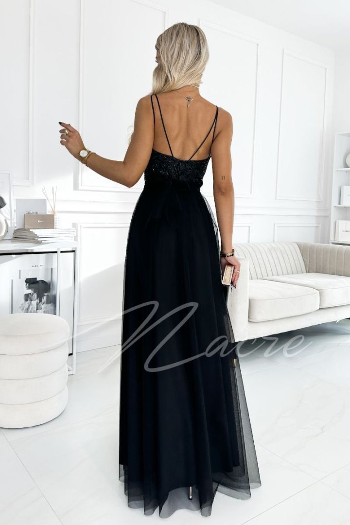 Czarna sukienka tiulowa na ramiączkach z bogato zdobionym gorsetem - Samira