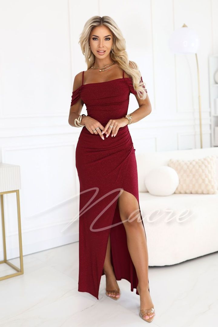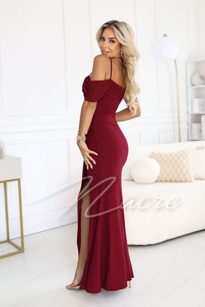 Bordowa sukienka maxi z elastycznego materiału i dekoltem woda - Hera
