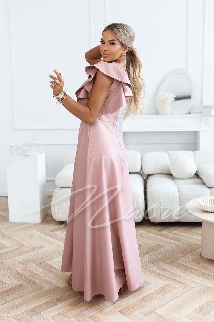 Czekoladowa sukienka wieczorowa maxi z rozkloszowanym dołem - Lupe