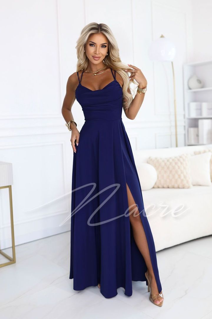 Różowa sukienka maxi z rozcięciami na szerszym ramiączku - Tamy