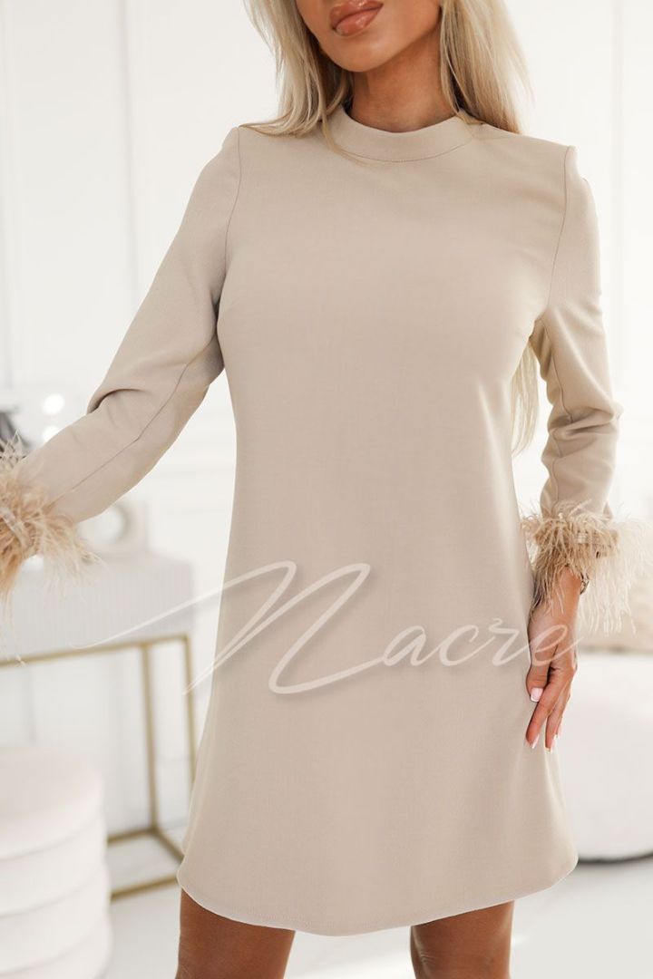 Czekoladowa sukienka wizytowa przed kolano z długim rękawem - Dominika