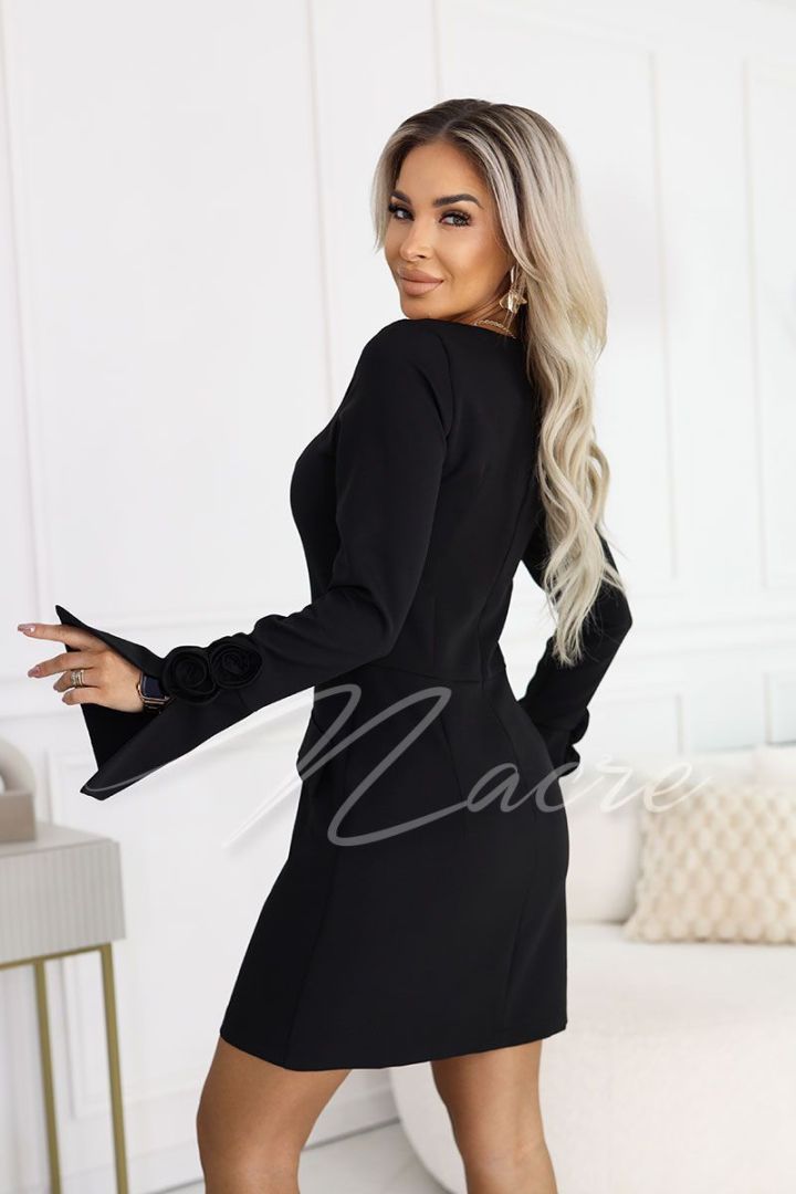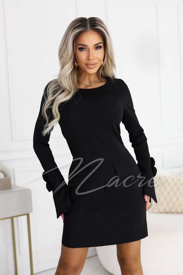 Czarna sukienka wizytowa przed kolano z długim rękawem - Dominika
