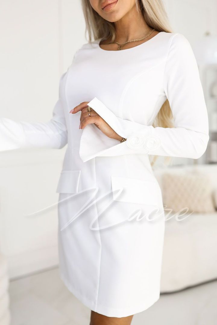 Niebieska wizytowa sukienka przed kolano z długim rękawem - Etna